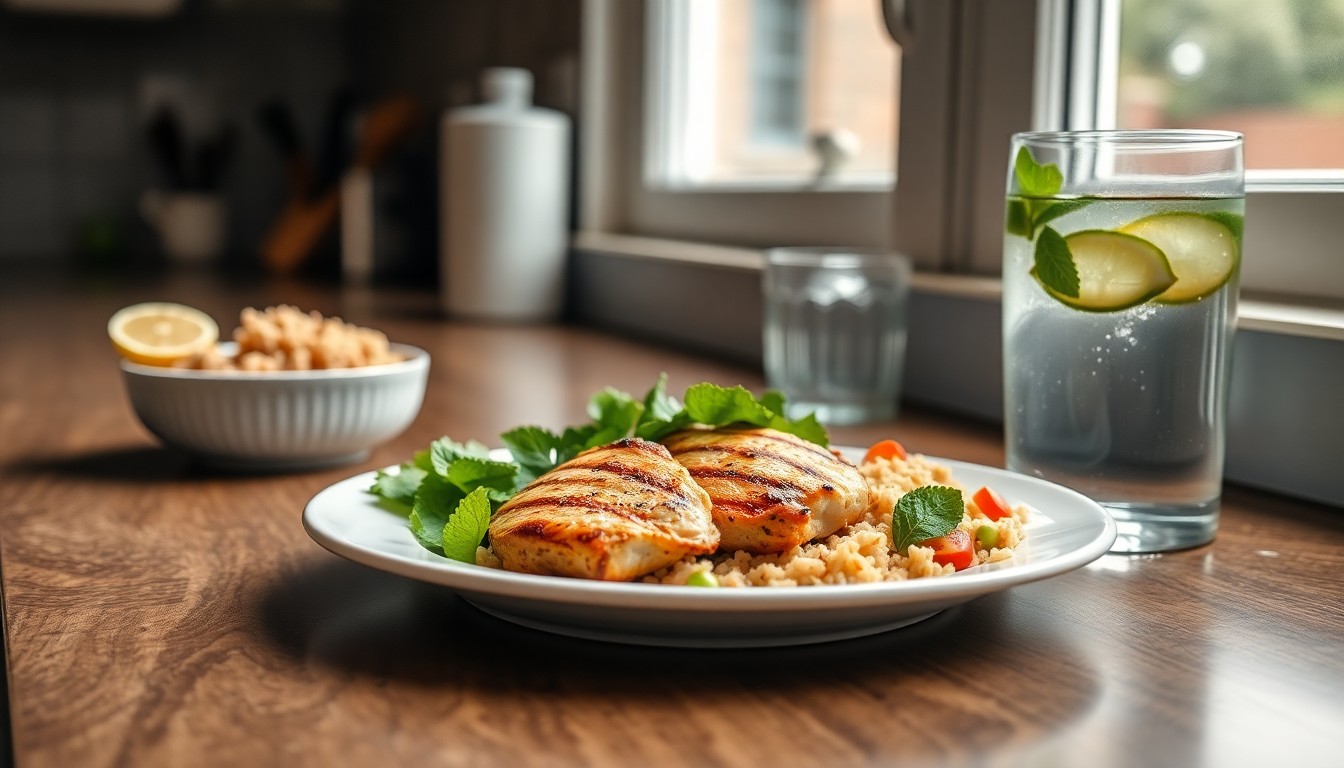 أضف مصدر بروتين — قطعة دجاج مشوي (150 غم) أو سمك سلمون مع قليل من زيت الزيتون.