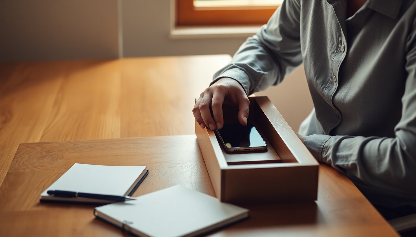لماذا يساعدك هذا: يضع الهاتف في مكان ثابت بعيداً عن يدك، مما يقلل فرصة التصفح العشوائي.