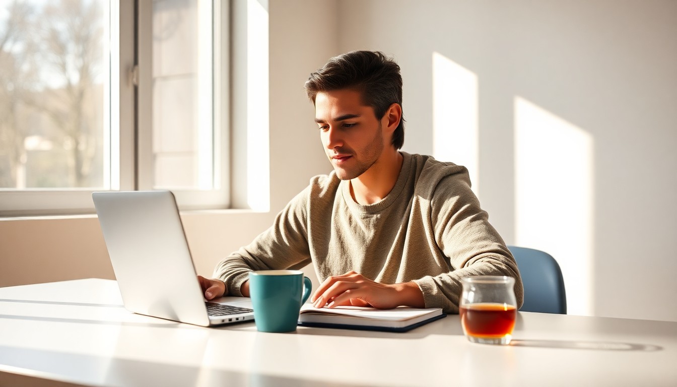 Selbstständiger Texter, der täglich mit Fokus arbeitet