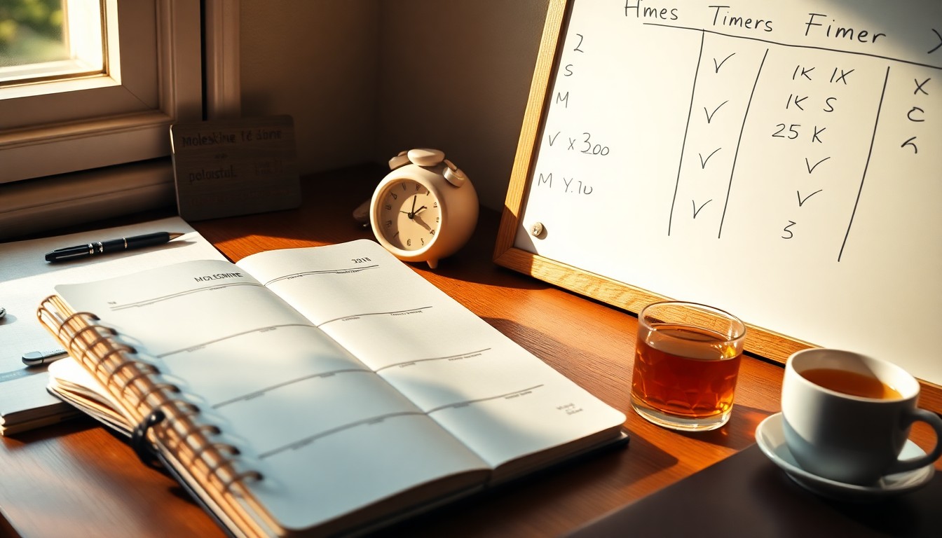 Konzentriere dich auf kleine, tägliche Schritte statt auf das Endergebnis. Nutze Fokusblöcke von 25 Minuten, um produktiv zu sein, ohne dich zu überlasten. Pausen sind entscheidend – plane sie fest ein.