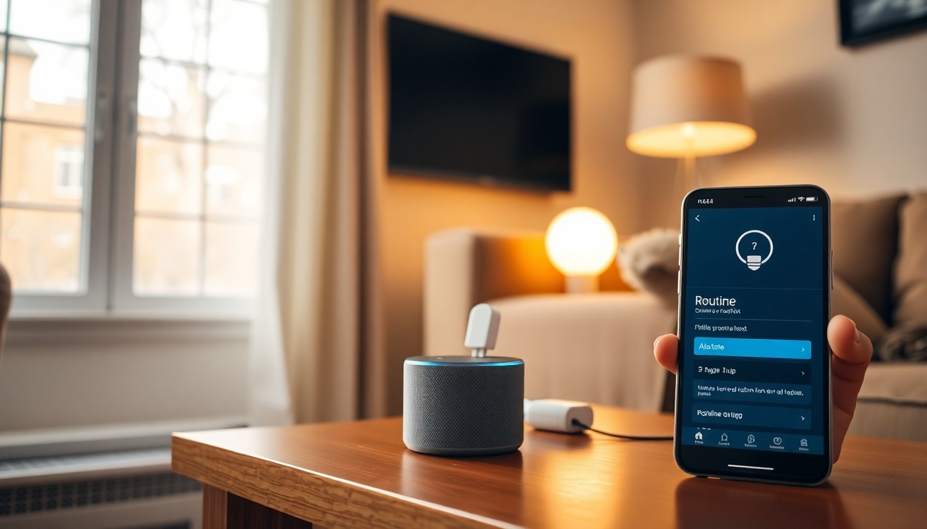Open your hub app — In the Alexa or Google Home app, go to the Routines section and tap 'Create Routine'.