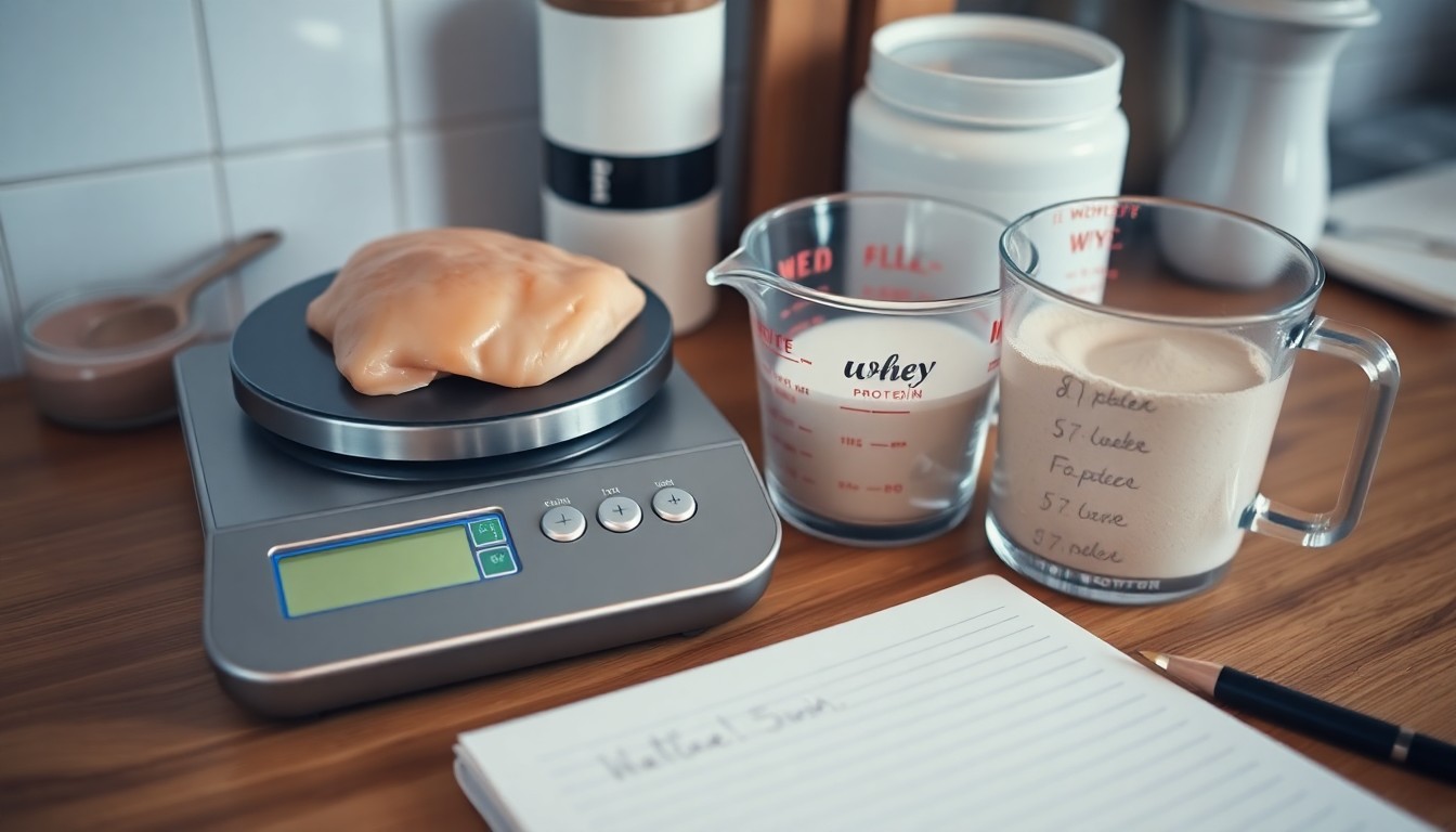 Calcula cuánta proteína obtienes de alimentos sólidos — Suma el pollo, huevos, etc. que comes normalmente. Si te faltan 20-40g, un batido cubre el déficit.