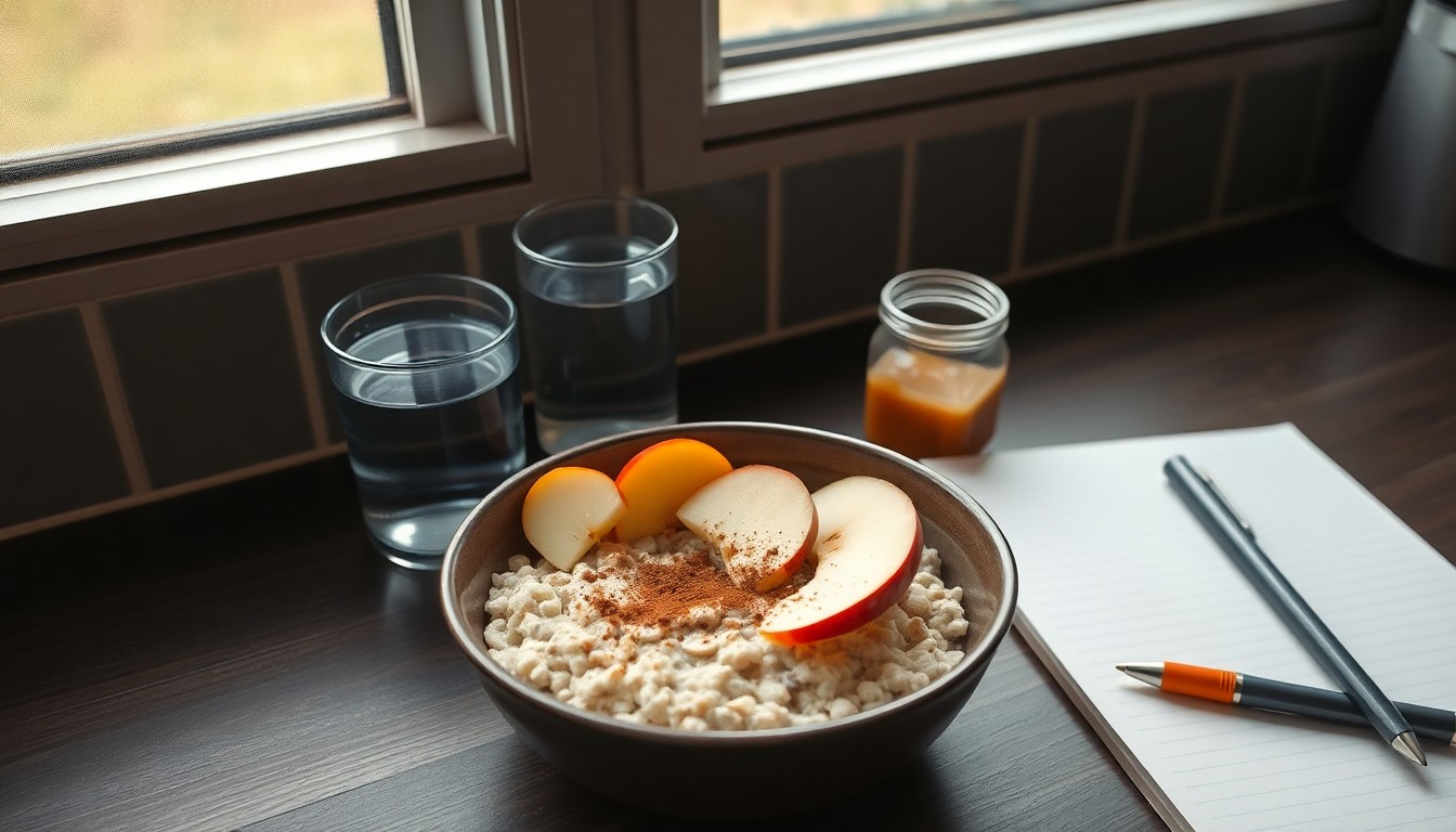 Elige una fuente de fibra soluble — Empieza con algo simple: media taza de avena en el desayuno o una manzana como snack. La fibra soluble se disuelve en agua y forma un gel que ayuda a la digestión.