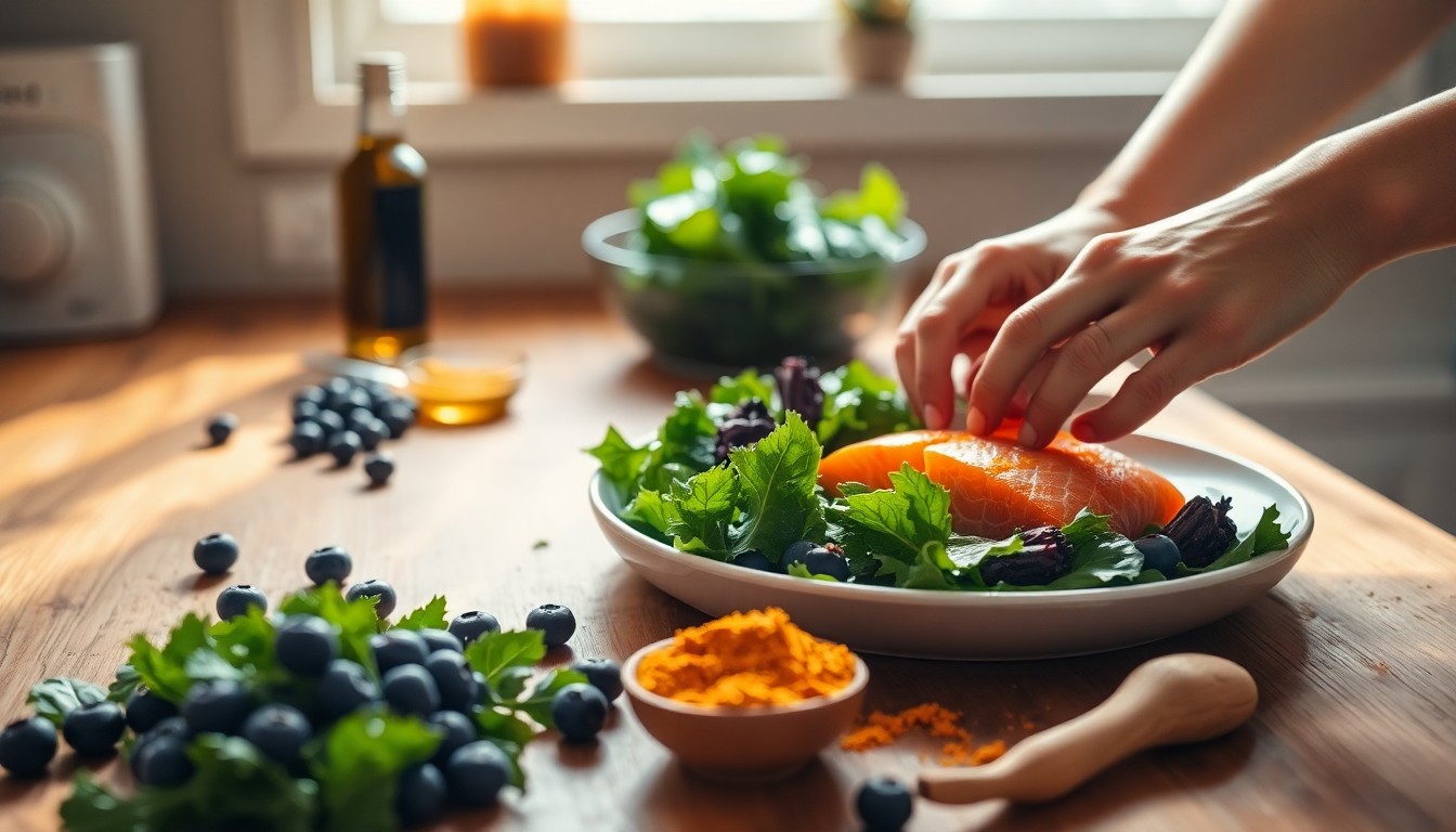 Añade potenciadores antiinflamatorios — Incorpora tres veces por semana pescado azul pequeño (sardinas, caballa) por sus omega-3. Añade cúrcuma en polvo a guisos o batidos (con pimienta negra para mejorar absorción). Incluye un puñado de frutos rojos (arándanos, frambuesas) al día.