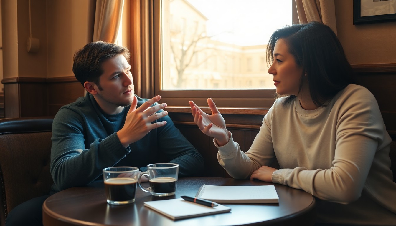 Propón un lugar neutral — Sugiere una cafetería tranquila o un parque; evita vuestras casas o lugares con recuerdos cargados de la pelea.