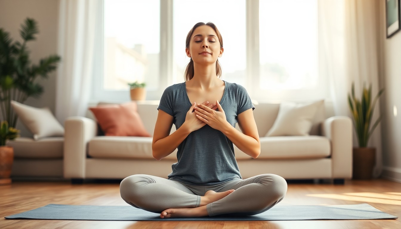 آرام سے بیٹھ جائیں — کمر سیدھی رکھیں، ہاتھ گھٹنوں پر رکھیں۔ آنکھیں بند کریں۔